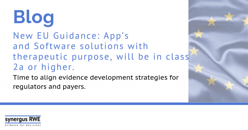 New EU Guidance: App’s and Software solutions with therapeutic purpose will be in class 2a or higher – Time to align evidence development strategies for regulators and payers.